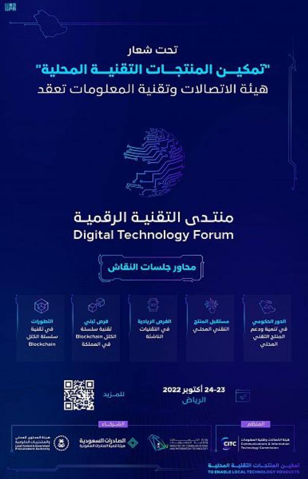 تعتزم هيئة الاتصالات وتقنية المعلومات بالمملكة العربية السعودية عقد أعمال منتدى التقنية الرقمية لعام 2022 تحت عنوان “تمكين المنتجات التقنية المحلية”.