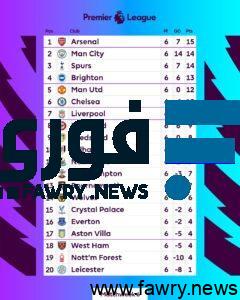 ويتصدر أرسنال جدول ترتيب الدوري الإنجليزي برصيد 15 نقطة وبفارق نقطة واحدة عن مانشستر سيتي صاحب المركز الثاني برصيد 14 نقطة وتوتنهام صاحب المركز الثالث بنفس الرصيد.